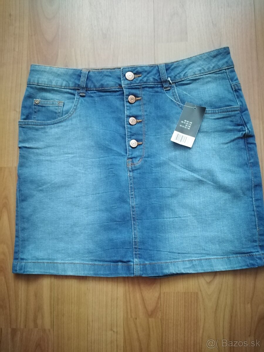 Rifľová sukňa - [2.3. 2026]Predám rifľovú sukňu ako je na obrázku. Miery sú: dĺžka sukne je 37 cm, v pase má 74 cm a boky sú 98 cm. Bližšie info meilom alebo na tel. čísle. Na dobierku neposielam.