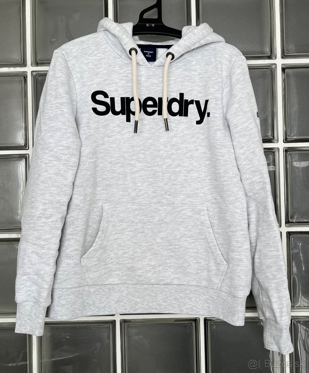Damska mikina Superdry, vo vynikajucom stave, bez poskodeni, oblecena asi 2X. V podstate nova ako vidiet na fotkach. Neutralna svetlosiva farba a velmi prijemny dobre nositelny material. Rebrové manžety, klokanie vrecko. Povodna cena 69,90Eur. Velkost L