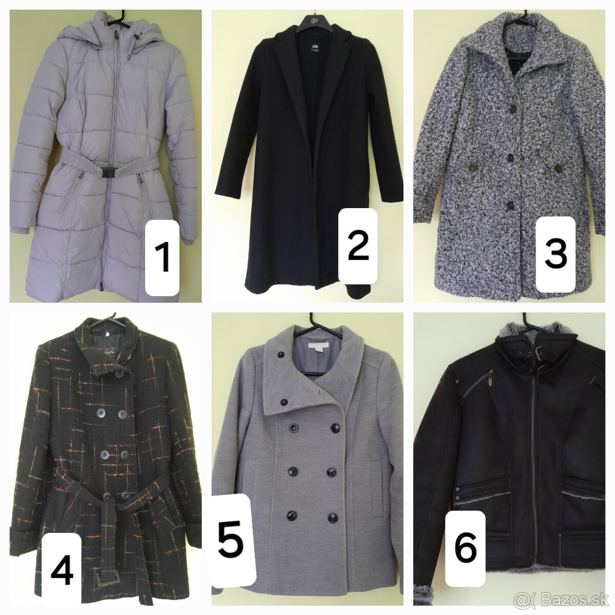 Zimný kabát s odopínacou kapucou v.38,cena 14€. 2.Čierny kardigán ZARA bez zapínanie v.M,cena 13€. 3.Melírovaný kabát v.38,cena 13€. 4.Čienooranžový kabát v.38,cena 11 €. 5. Sivý krátky kabát v.40,cena 11€. 6. Hnedá zateplená bunda AUTENTIC v 40,cena 19€. Ku každému nákupu je darček ZDARMA. Úhrada vopred +poštovné alebo osobne v Nitre. Dobierka NIE, dohoda možná. Posielam slov.poštou.