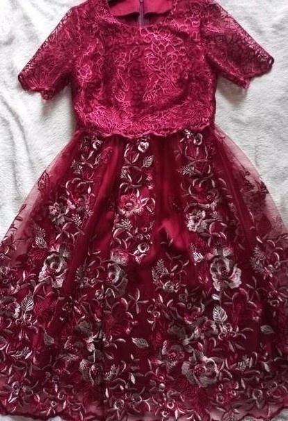 Krasne spoločenské krajkové šaty, sú šité na mieru v salóne. Dlžka pod kolená. Zapínanie vzadu na zips. Otázky rada zodpoviem, premeriam. Veľkosť S/M. Šaty boli oblečené raz, šité na špeciálnu príležitosť, preto ich posúvam ďalej, nech nájdu využitie. Rukávy podšité nie sú, rafinovane sú priesvitné.V prípade spravím aj viac fotiek a otázky zodpoviem. Darujem k ním jedny z dvoch červených sandálikov , nie sú sice vhodné k týmto šatám, ale na iné príležitosti. Velkost 36, ak by sadla. ZN: Bonjourno a Vera Goma/pravá koža/ Možny aj osobný odber v Košiciach. Mám viac vecí, kludne nahliadnite do môjho bazárika