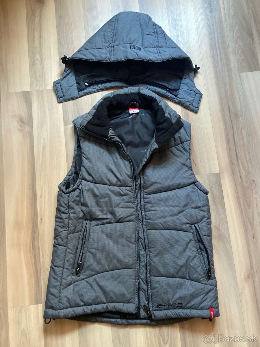 Predám vestu s odnímateľnou kapucou, dve vonkajšie kapsy, jedna vnútorná kapsička, veľkosť XS, celk. dĺžka 67 cm, nosená veľmi málo, zn. SAM73