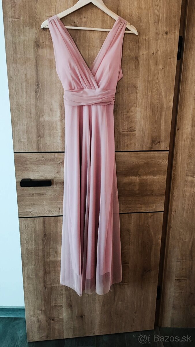 Spoločenské šaty veľ.S - [2.3. 2026]Ponúkam spoločenské šaty veľ.S vo výbornom stave. Pekne sa prispôsobia postave, vrchná časť je elastická.
