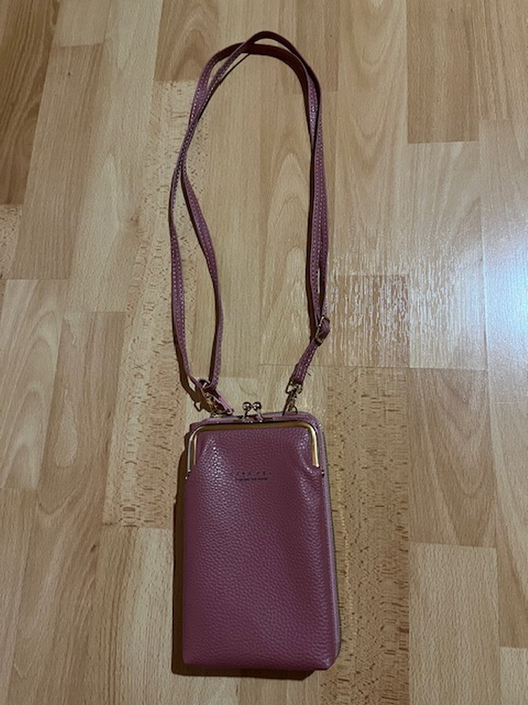 Mini taška Carr Ken v ružovej farbe sa skladá z dvoch praktických častí. Prvá z nich je funkčná peňaženka s priehradkami na bankovky, vreckom na mince so zipsom a sloty na platobné karty. Druhou je peňaženka, ktorá slúži ako puzdro na telefón. Kabelka Je vybavená nastaviteľným popruhom, je vyrobená z mäkkého syntetického materiálu, ktorý nielen imituje kožu, ale je aj príjemný na dotyk.