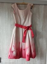 Ponúkam jeden krát oblečené krásne šaty bledoružovej farby, ktorá a sukni prechádza do tmavšej s tulipánmi. PC 78,- euro
