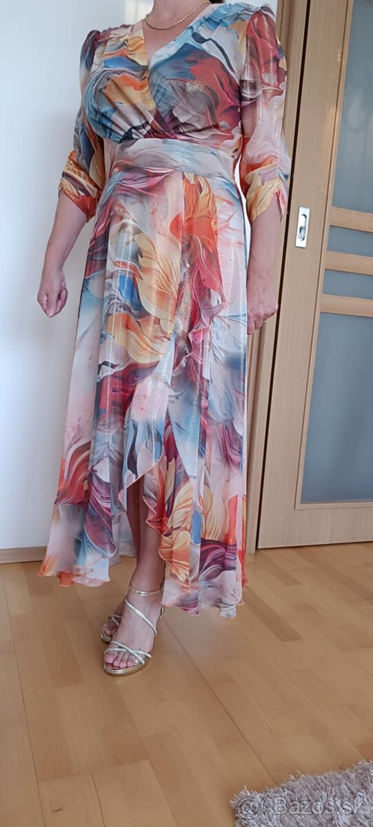 Predám nádherné šaty vhodné na svadbu, ples aj dovolenku v.c.38/40.Raz oblečené stály 192€,predám 115€.Len volať.Dohoda mozna.Vhodne na ples