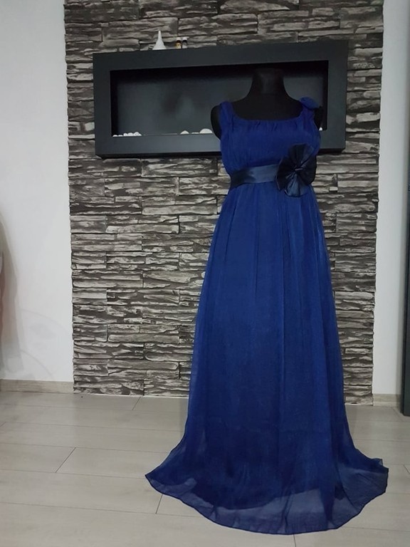 Predám spoločenské šaty v modrej farbe. Šaty sú voľnejšieho strihu , vhodne strihnuté pod prsiami sú vhodné aj pre tehotné .