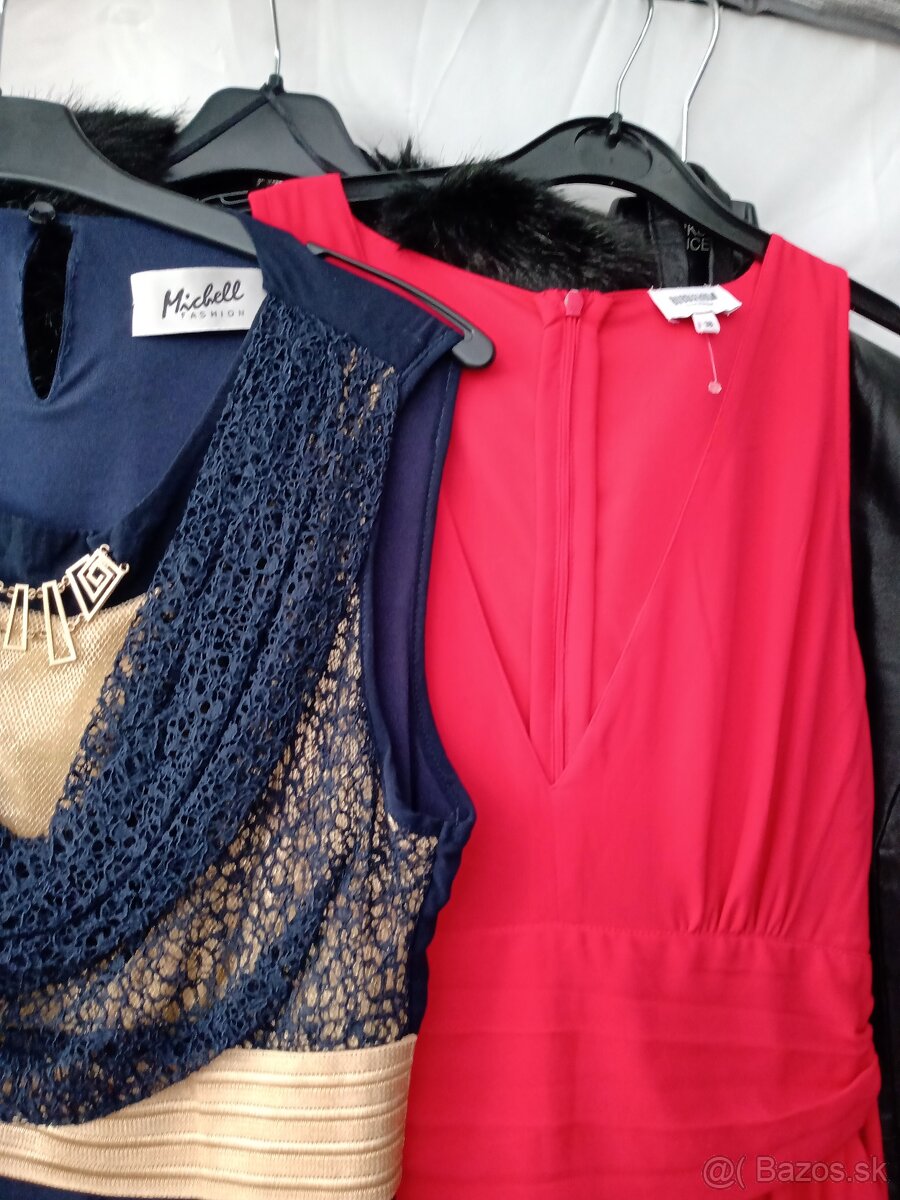 CcaFoto: Dlhé šaty 40/42(tmavomodré/vpredu hore zlatá+sieťokrajka modrá) +plus nový ľahký"bezpodšívkový kabátik čierny(strih ako svetrík-otvorený kardigán) a pridáme naviac 2xobuv č.39/50e, dlhé šaty červené veľ.34/36 a lodičky č.39+kabelka/50e. Ak spolu,pridáme iné(1+1parfum,alebo taška,či 2xšaty krátke,ap.). Odber Ba2,nie poštou.