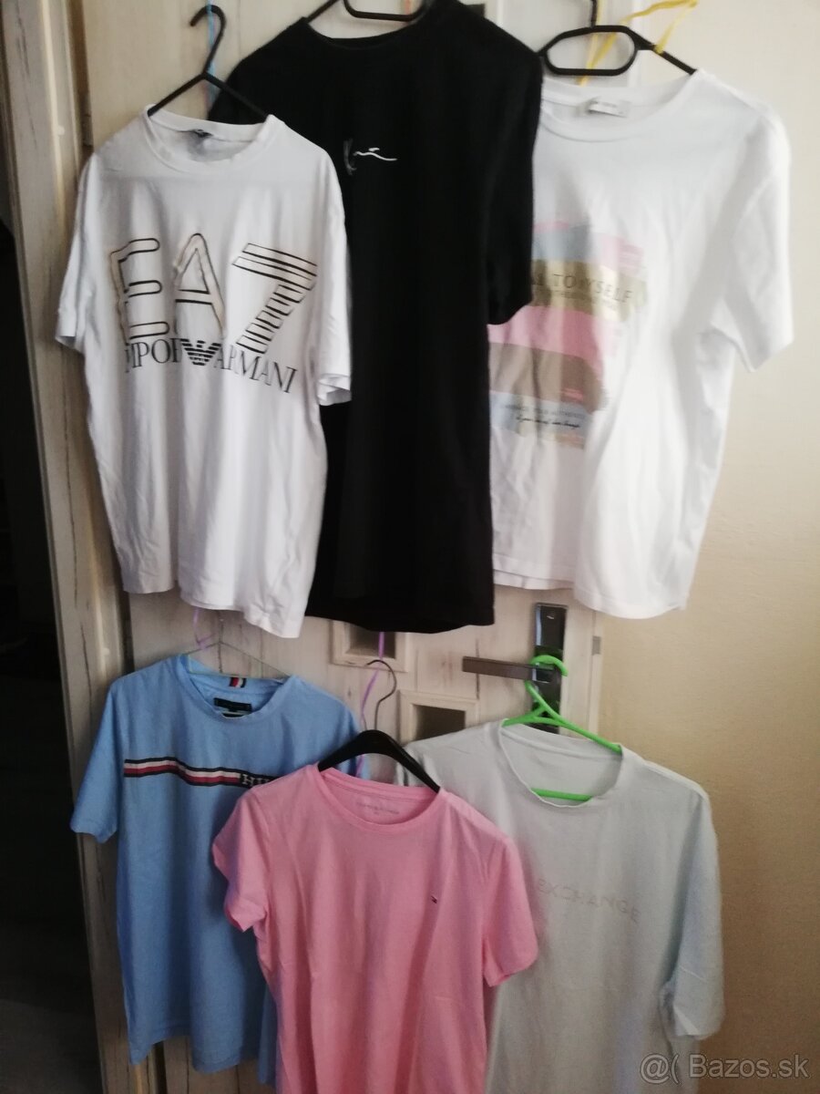 Armani dve biele, Tommy Hilfiger modré a ružové veľkosť L 1kus 5€