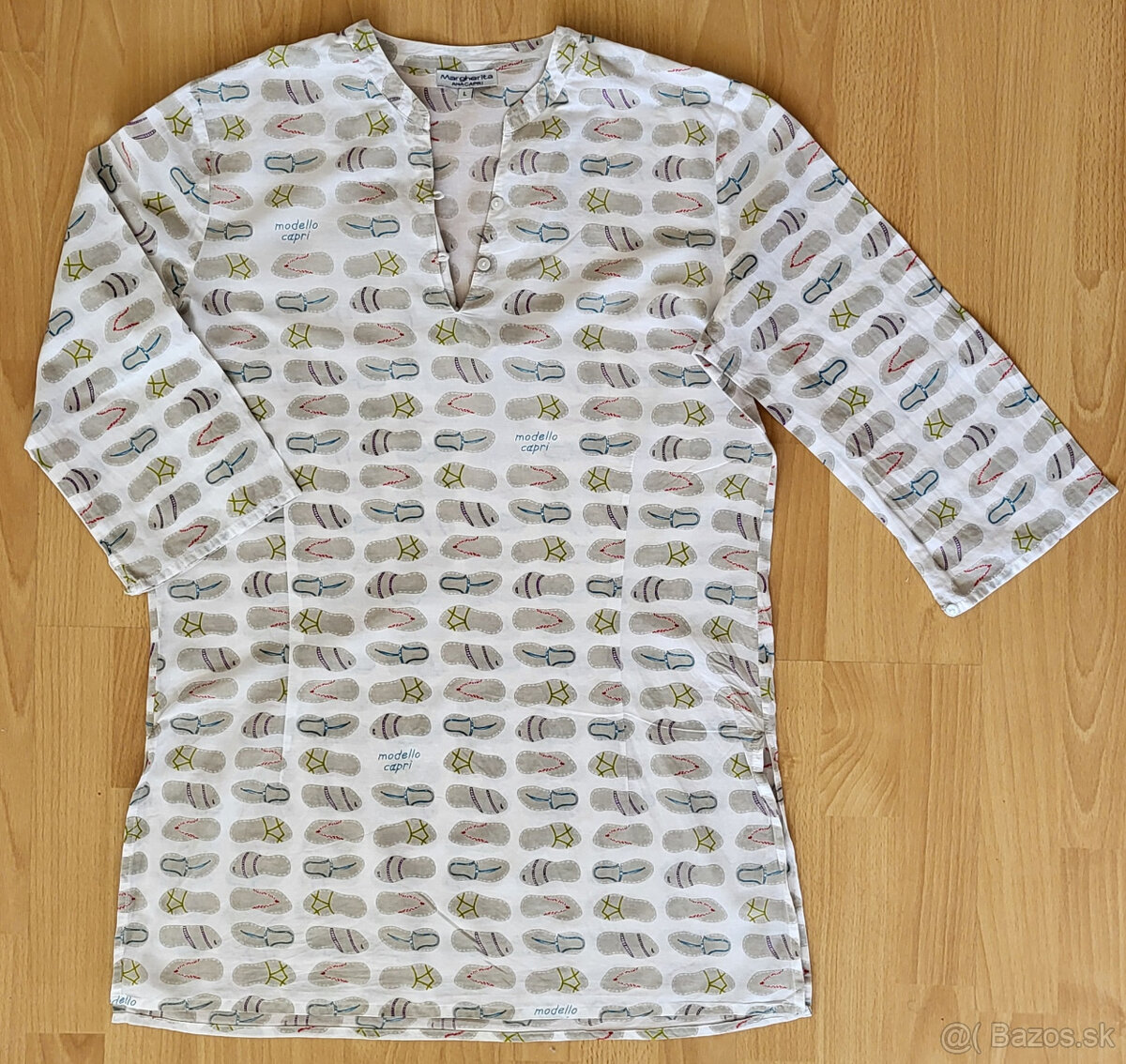 Ľahké šaty vhodné na pláž, ale i do mesta. Príjemný materiál. Značka: Margherita Ana Capri. Veľkosť: L. Dĺžka šiat: 81 cm. Dĺžka rukáva: 45 cm.