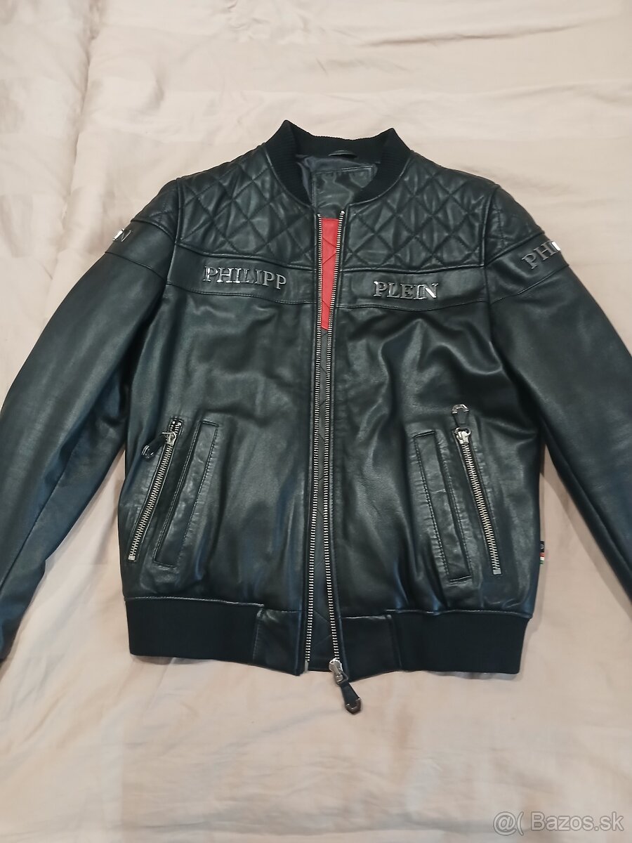 Predam kozennu pansku bundu Philipp Plein original c56 italy dizajn Schvitzerland presivana satenove vnutro + vnutorne vacky +na tel.vacky zipsi vsetko detailne obsite prava koza bunda je uplne nova nenosena nova kolekcia 2025 cena 580eur nachadza sa Senec okolie Ba