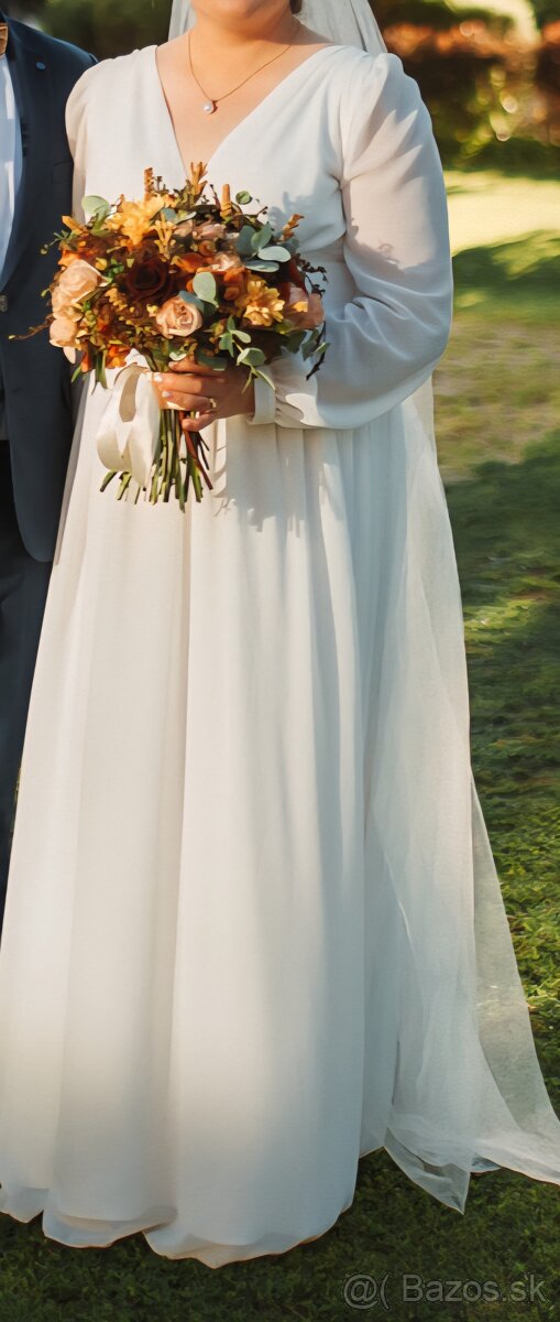 Predám jednoduché svadobné šaty, vhodné aj ako popolnočné.