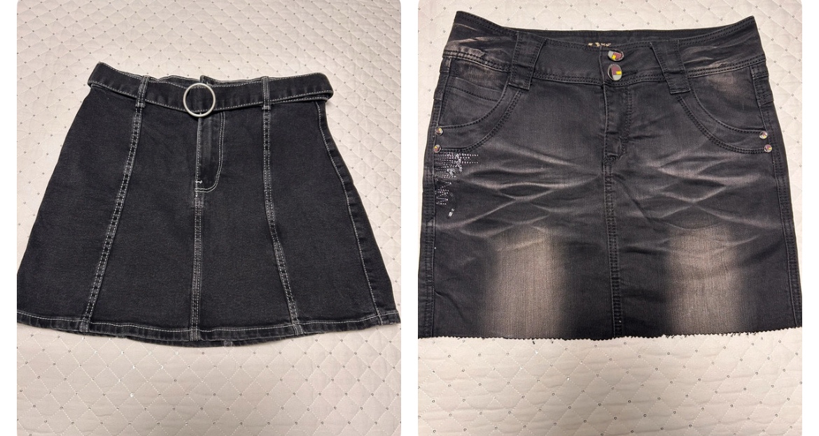 Predám Dámské mini sukne čierna riflová, maskáčová na traky. Veľkosť S, cena za ks/5€