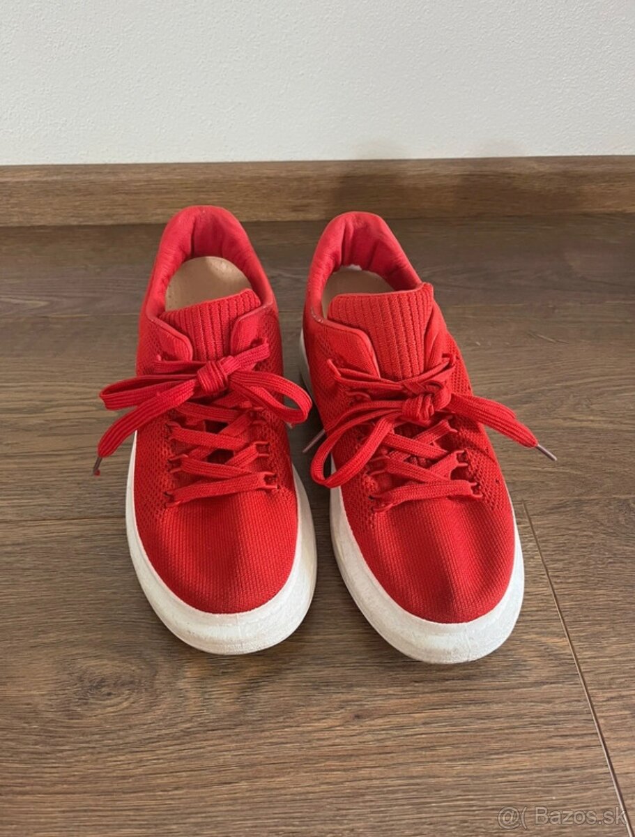 Predám dámske červené veľmi pohodlné tenisky, obuté 3x, vo výbornom stave. Kúpené na IMODA za cenu 27€. Veľkost je 38.