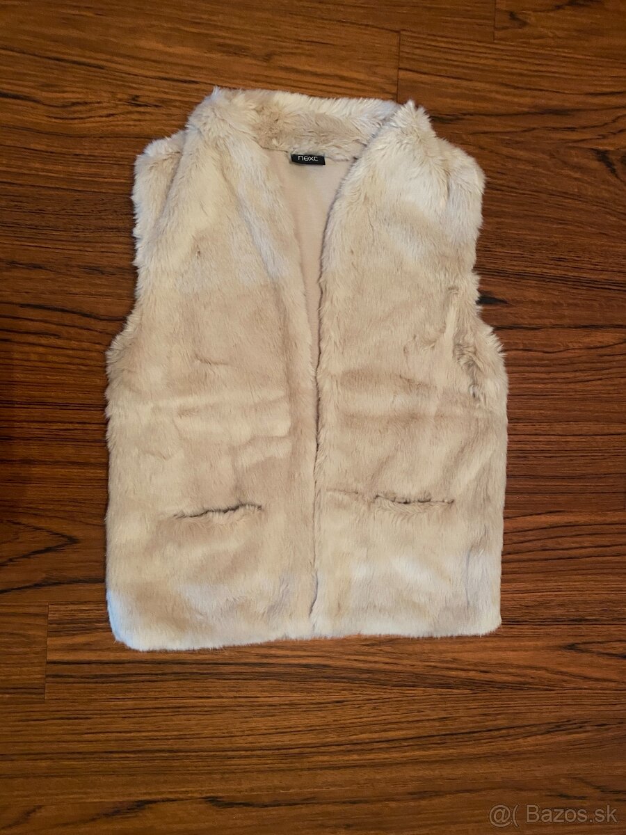 Predám vestu NEXT, umelá kožušina jemná, béžová. Bez zapínania, dve bočné vrecká, podšitá.