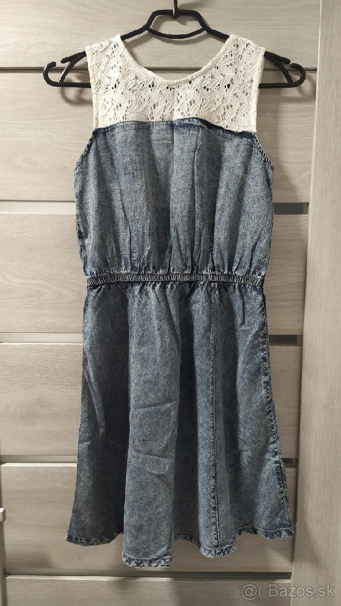 Šaty rifloveho vzhľadu s čipkou, veľkosť písaná 36, sadnú na xs-s. Posúvam za cenu + poštovné prevodom alebo osobne v Ba.