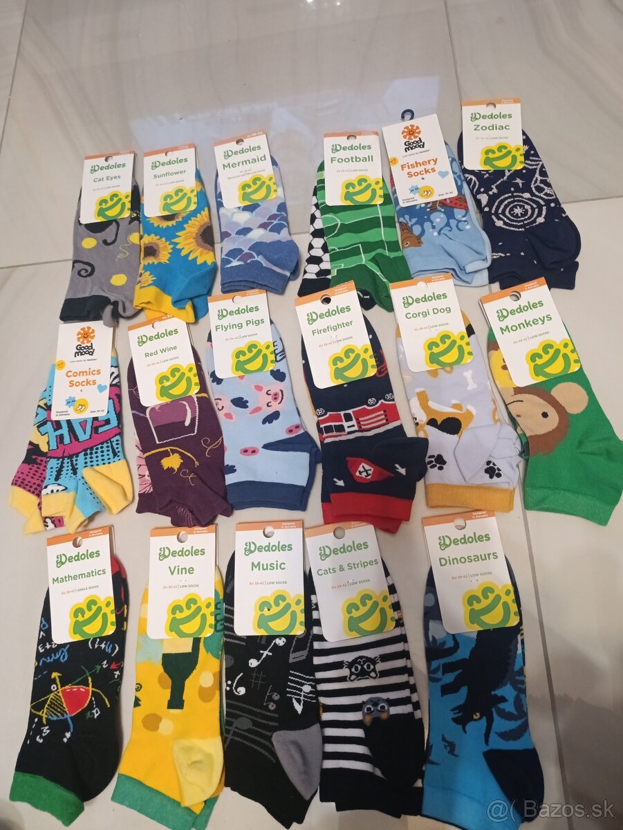 Veselé dedoles ponožky 35-38 - [9.3. 2026]Krásne veselé ponožky od dedoles vo veľkosti 35-38, rôzne motívy, vysoké sú za 2,95€ a členkové sú pár za 2,75€, vhodné aj ako darček na dobierku neposielam