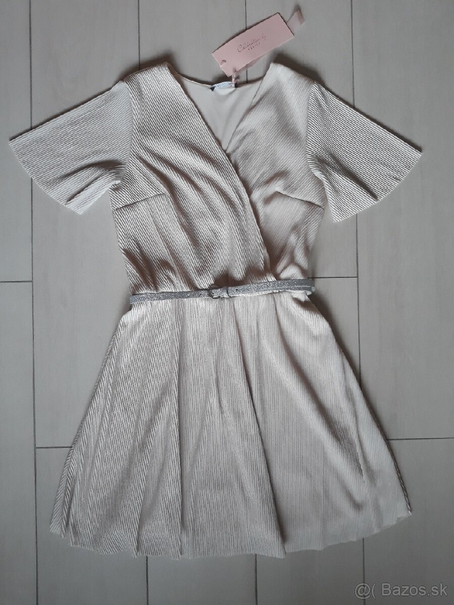 Ponúkam na predaj nové béžovo strieborné šaty s opaskom zn. Mohito. Šaty sú strednej dĺžky a z príjemného materiálu. Vhodné na rôzne príležitosti. Veľkosť XL. Dôvod predaja- nesedí mi veľkosť. Pôvodná cena 34,99€, predám za 19,99. Možný tiež osobný odber. Posielam poštou po uhradení poštovného vopred na účet.