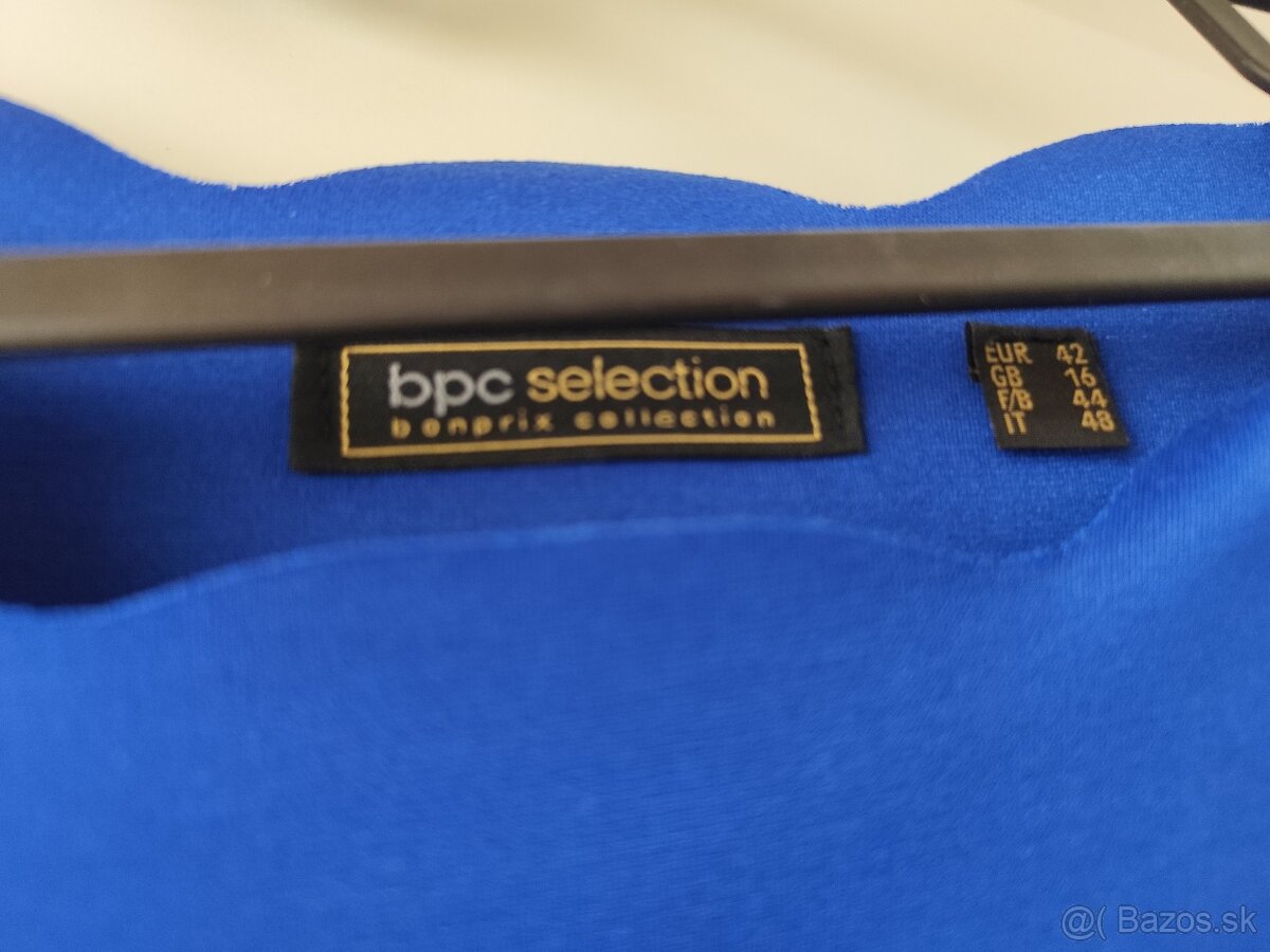 Predám dámske šaty nové, kvalitné, nenosené (Bonprix), veľkosť 42, farba kráľovská modrá. Majú pekný detail okolo krku a na rukávoch