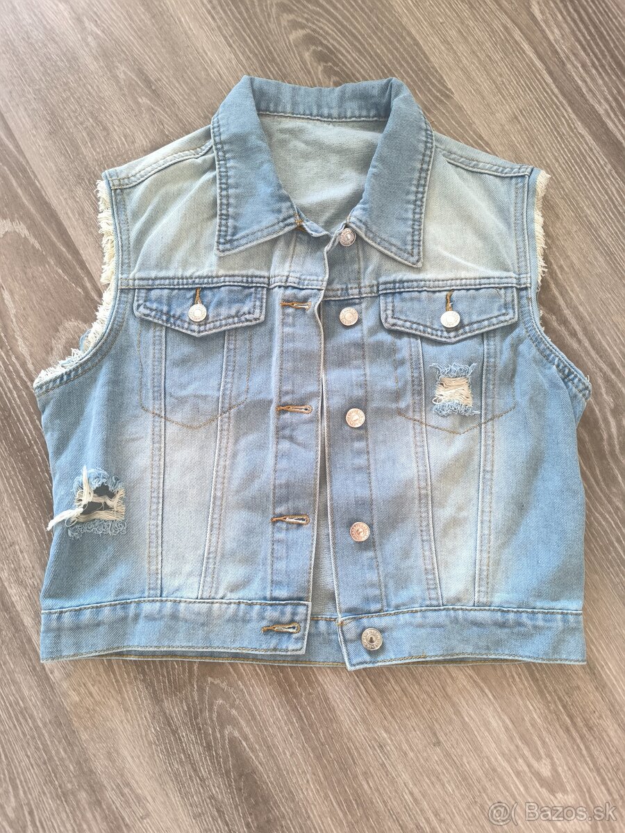 Rifľová vesta - [28.1. 2026]Dámska rifľová vesta bledomodrej farby s vyšúchaným efektom. veľkosť 36. Dĺžka je cca. 54cm a šírka meraná pod pazuchami 40cm. Moc som ju nenosila a nemá žiadne známky používania, preto ju posúvam ďalej, nech slúži niekomu, kto ju vynosí. Píšte, na poštovnom sa dohodneme.