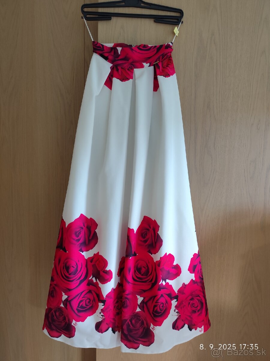 Kvalitná spoločenská sukňa s červenoružovými ružami v super stave.