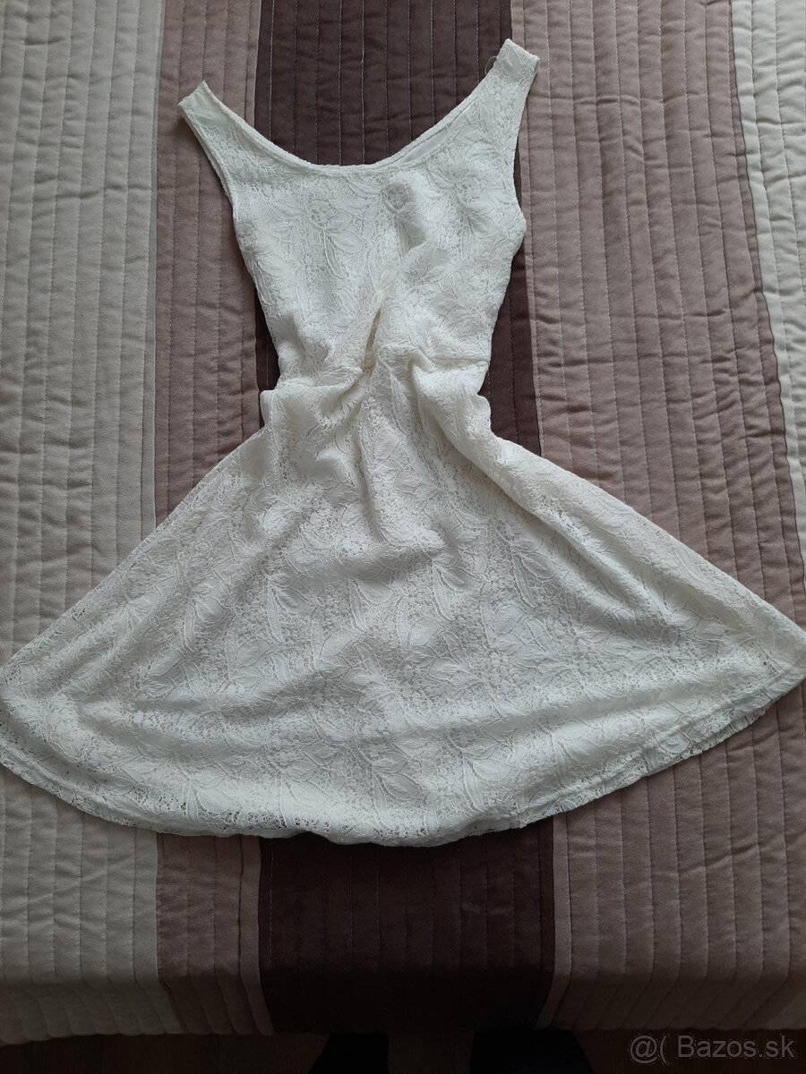 Predám čipkované šaty smotanovej farby vo veľkosti 38, šaty som mala oblečené pár krát na príležitostiach ako sú oslavy alebo promócie, ale už ich nevyužijem preto posúvam ďalej. Šaty majú naboku zips, sú trošku elastické tak sa prispôsobia postave. Dĺžka šiat od pliec po koniec sukne je 83 cm a šírka cez prsia 2x39 cm. Na cene sa viem ešte dohodnúť, budem rada ak ešte niekomu poslúžia a nájdu využitie.