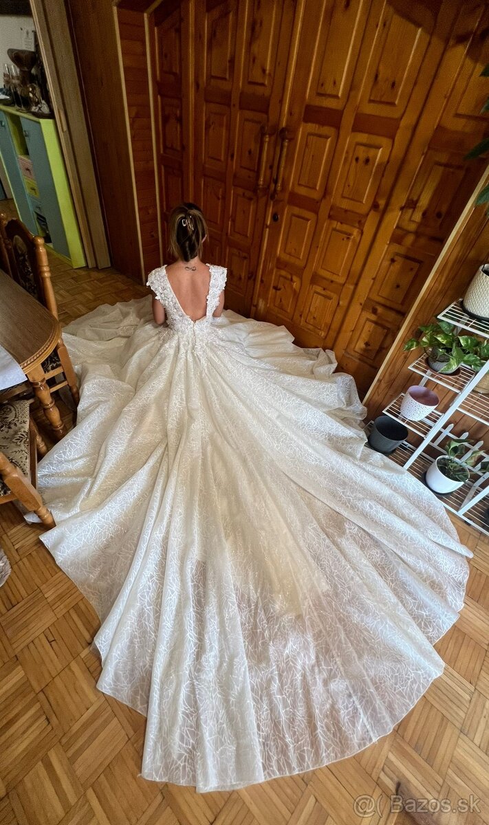 Ponúkam na predaj jedinečné svadobné šaty, veľkosť S.Šaty kupované v zahraničí, vrch šiat vyšívaný ručne. K šatám je aj spodnička a kruhom a závoj. V skutočnosti vyzerajú ešte krajšie.