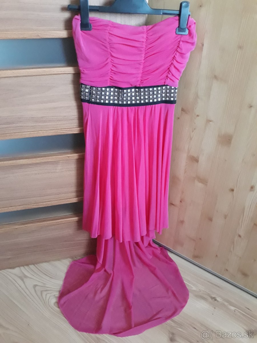 Predam spolocenske saty, mozu byt aj na bezne nosenie. Vpredu kratke, vzadu dlhe. Na prsiach mierne vystuzene. Velkost nie je uvedena, ale typujem S. Oblecene max. 2x. Vyborny stav. Cena plus postovne. Len platba vopred.