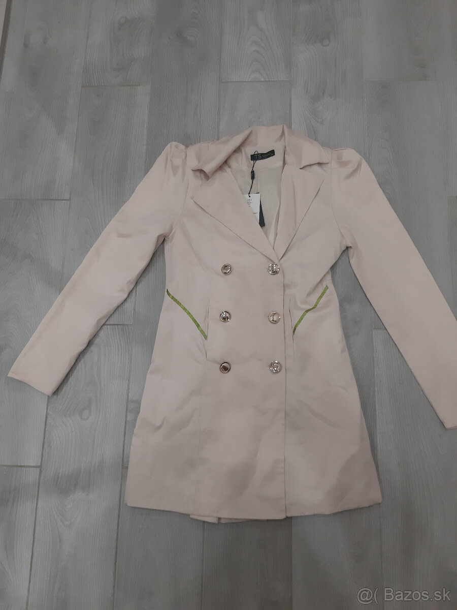 Predam novy elegantny kabat, velkost na stitku XXL, ale ovela mensia velkost. Vid rozmery na fotkach. na vnutornej strane latka je prasknuta na malej casti pri siti a tiez ma malu skvrnu na spodku, bude treba preprat.