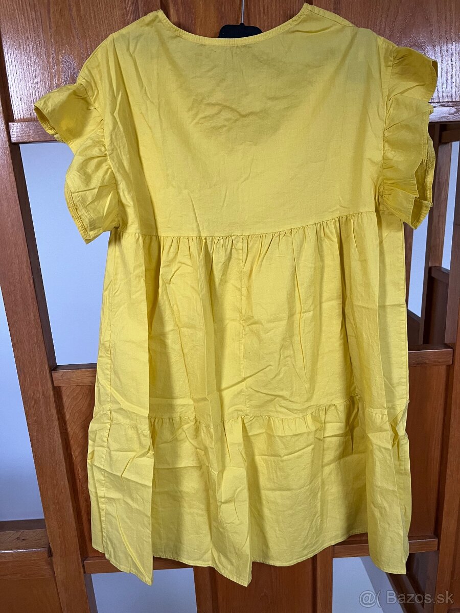 Ponúkam na predaj letné šaty s volánmi žltej farby. Veľkosť univerzal, ani raz neoblečené, nesadli na postavu. Pôvodná cena 24 euro. Teraz cena 20 euro. Pošlem poštou na dobierku.
