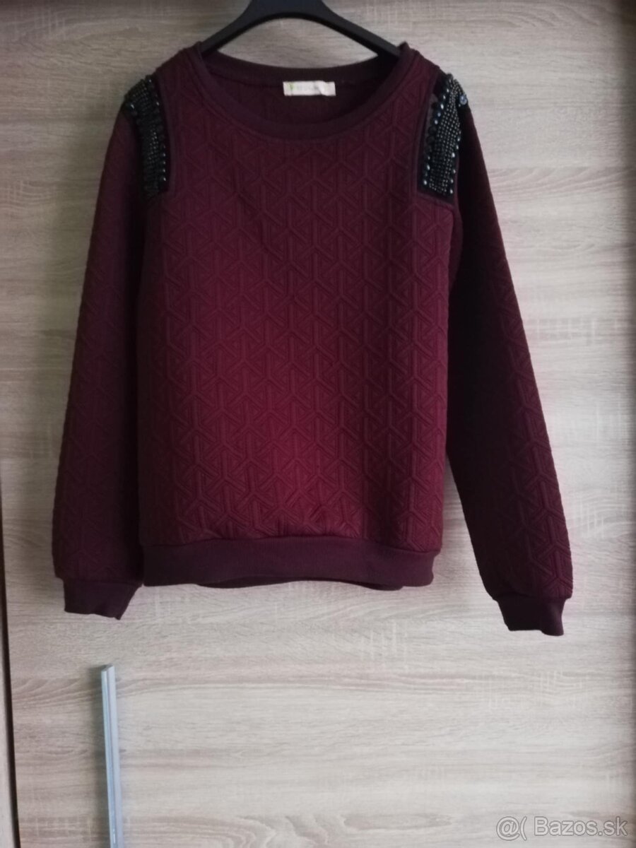 mikina bordová EBELIEVE s aplikaciou kamienkov-štras, vel.2XL =6eur