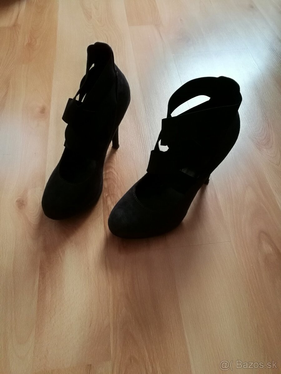 Predám lodičky tmavo-sivej farby na vysokom opätku s prepletenou čiernou gumičkou, veľkosť je 38. V prípade záujmu ma prosím kontaktujte mailom.