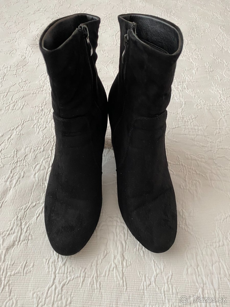 Dámske super kotnikove cizmicky v.39-40 - [11.3. 2026]Dánske cierne kotníkove cizmicky so zlatym opätkom - model / botaskové ,velmi pohodlné ! Nové - kupované v Anglicku !