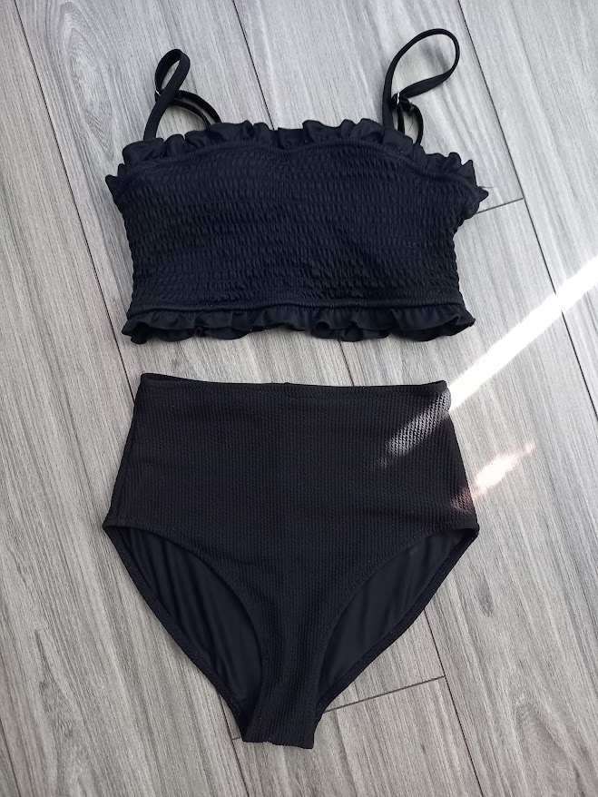 Čierne dvojdielna plavky značky ever.me nosené 1 leto. Spodok aj vrch plaviek podšitý. Ramienka regulovateľné . Výška spodného dielu 30 cm-viď fotka. Cena 4 €+3 € poštovné ako balík na poštu doporučene.