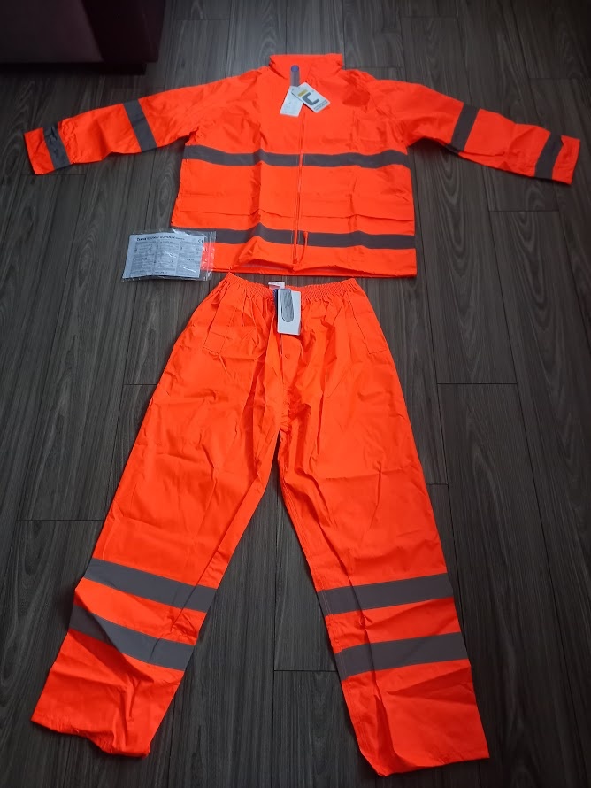 Výstražná kvalitná nepremokavá bunda s nohavicami a s kapucňou s vysokou viditeľnosťou podľa normy EN 47, kapucňa je v golieri s visačkou. Vodeodolný, polyuretán, výstražný odev s vysokou viditeľnosťou pre profesionálne použitie. Nohavice sú ľahké, v páse na gumu. Materiál: 100 % polyester, Povrstvenie: polyuretan. PC bola 48,80 €, teraz 15 €+poštovné. Na SMS nereagujem, treba napísať e-mail alebo zavolať