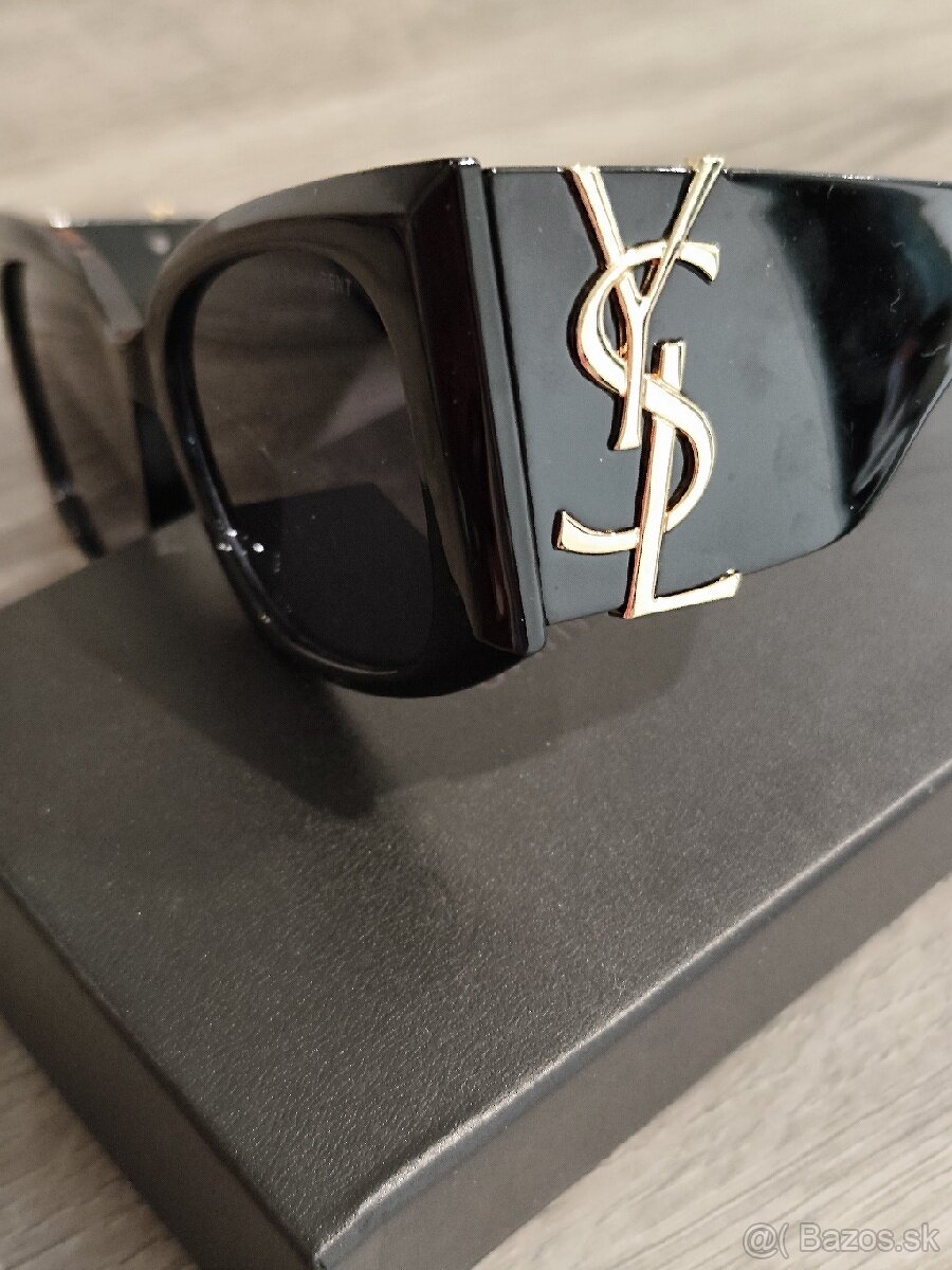 Nádherný kúsok. Čierne slnečné okuliare so zlatou aplikáciou. veľké zlaté logo YSL 1:1 Pristanu naozaj každej tvári. Dokonalé. Na predaj iba okuliare bez balenia.