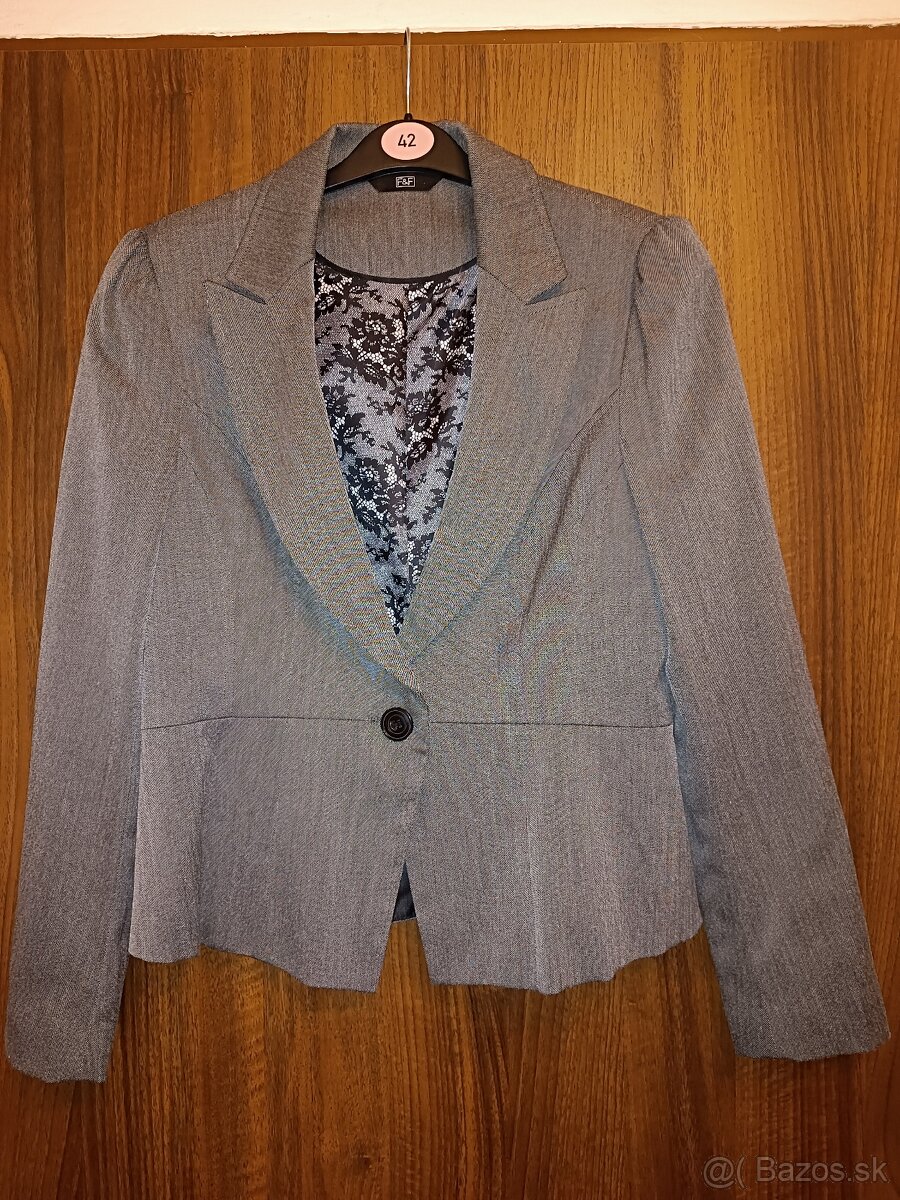 1. damske sako sivej farby, velkost 42 -> 10eur