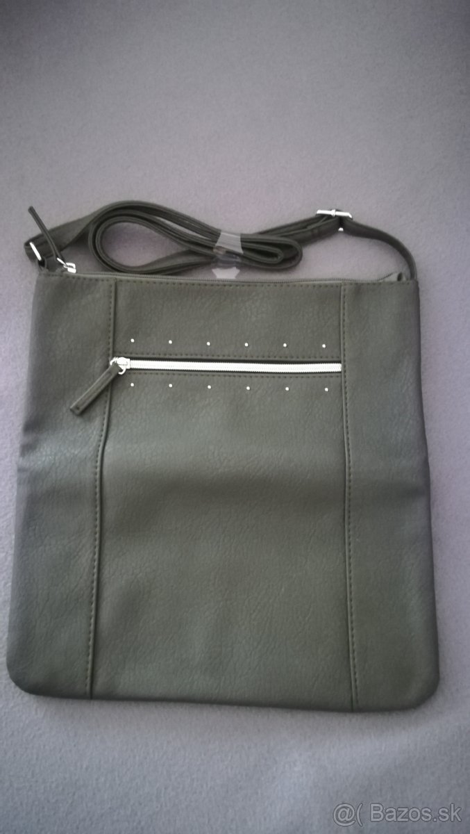 Predám úplne novú kabelku tmavo zelenej farby. Zapínanie z vrchu, vo vnútri jedna priehradka s malou priehradkou na zips na vnútornej strane.