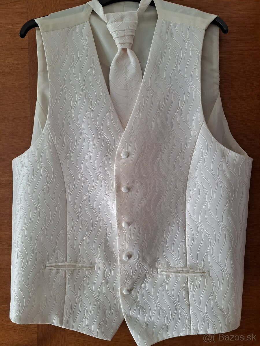 predám svadobnú vestu pánsku farba ivory/krémová s jemným vzorom veľkosť 56/58. Zadný diel jen podšívka.