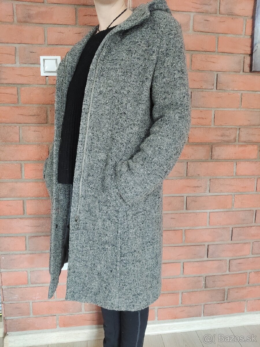 Predám málo nosený, vlnený dámsky kabát č. 38. Dĺžka cca 95cm, rukávy 60cm. Podšívka polyester. Farba: sivá