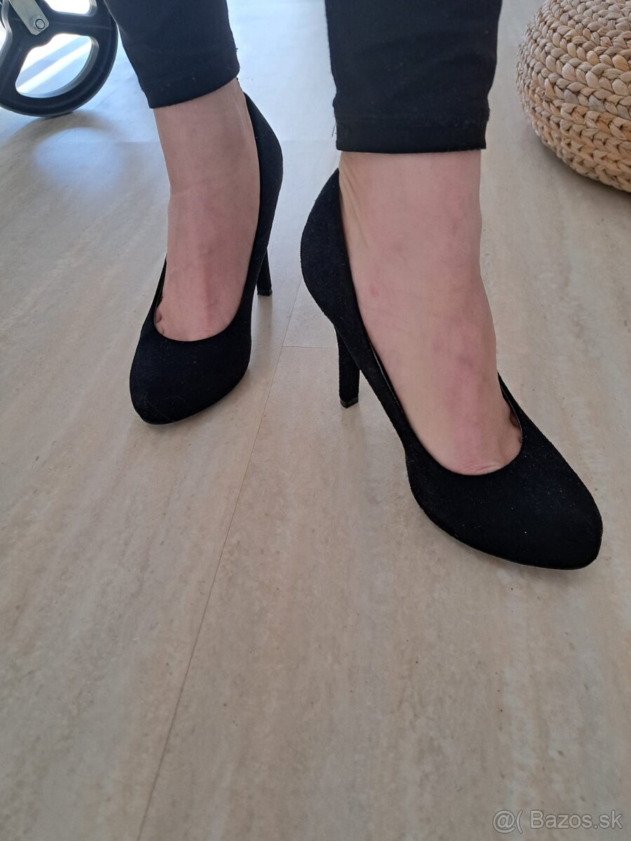Lodičky GRACELAND č. 38 - [16.3. 2026]Nosené, no zachovalé čierne lodičky. Bežné známky nosenia, opätky trochu šuchnuté, no pri nosení nie je vidieť.