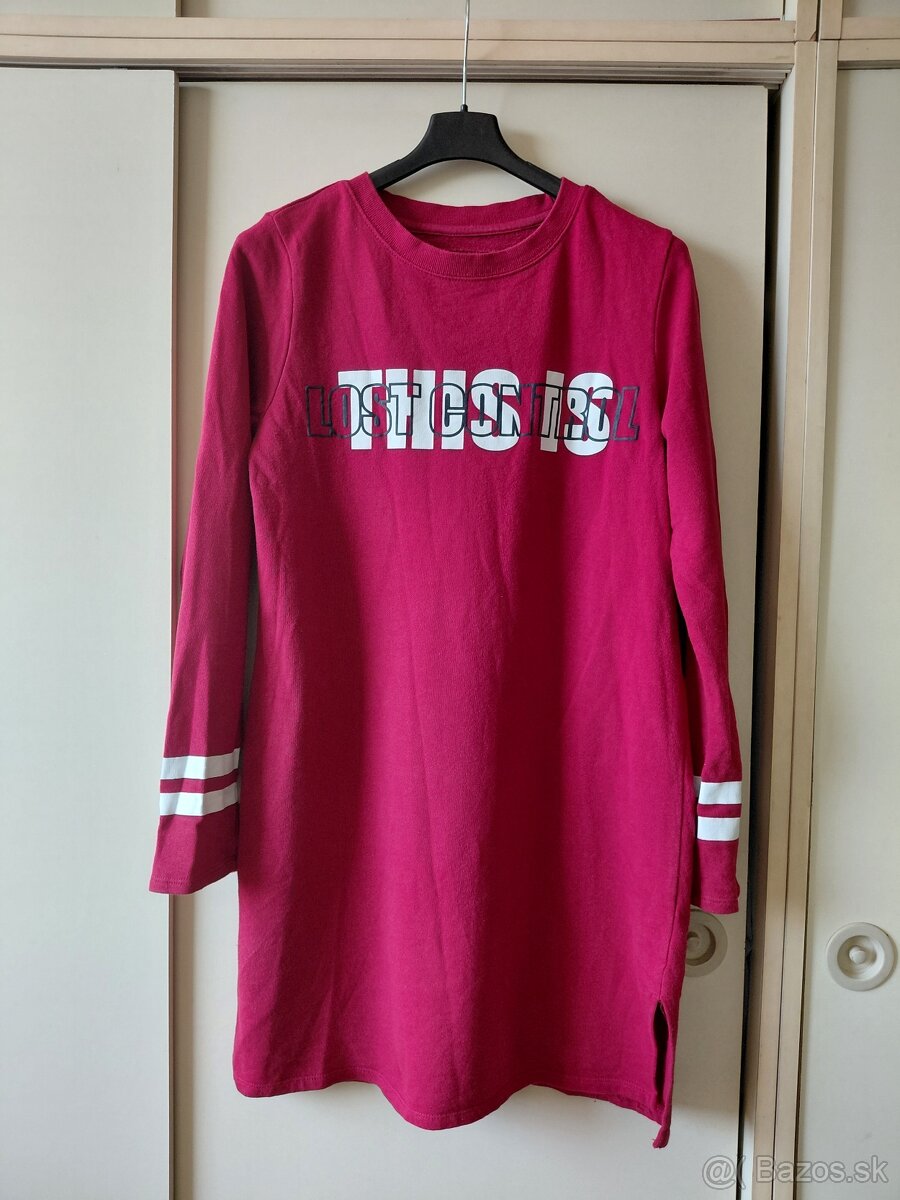 Pohodlné šaty s nápisom, materiál stredne hrubý, tak akurát.