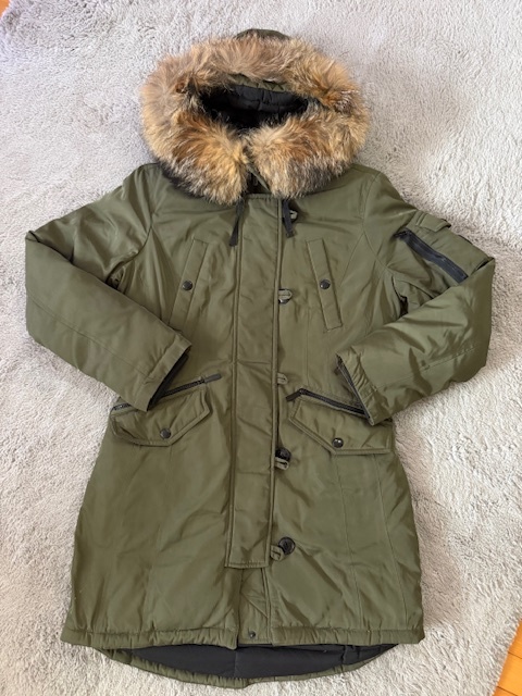 Ponúkam po mne pekný kabát veľmi teplý, výplň perie s pravou kožušinou na kapucni. Kožušina sa dá odobrať. Kabátik originál veľkosť M čo aj sedí.