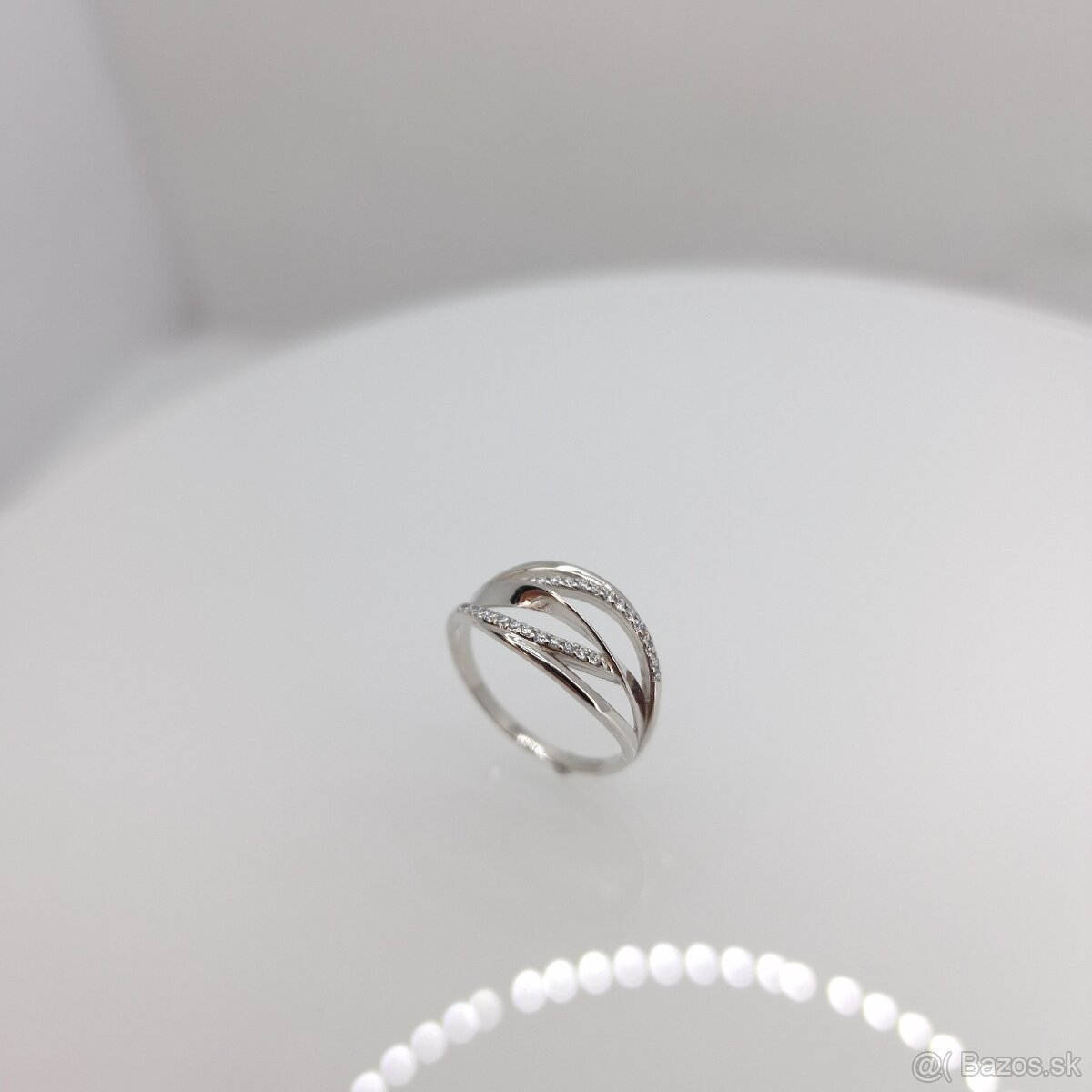 Predám úplne nový prsteň z bieleho 14K zlata 584. Prsteň má veľkosť 55 a po dohode viem upraviť. Váha prsteňa je 2,29g. Všetky kamene sú osadené ručne pre zamedzenie ich vypadnutiu. Všetky šperky odovzdávam v krabičke a riadne opuncovane.