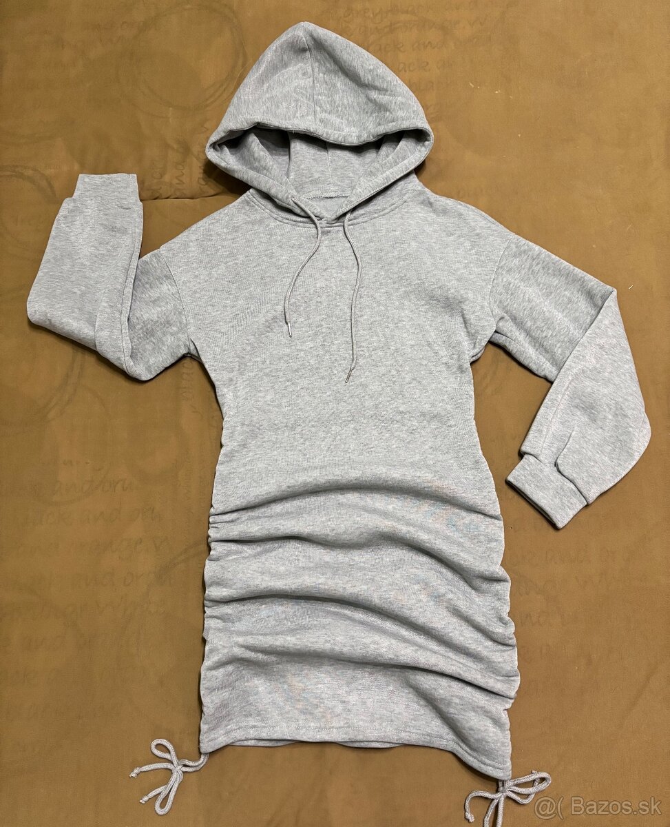 Dámska sivá mikina s nápisom - [2.3. 2026]Dámska sivá dlhá mikina s nápisom na kapucni.Veľkosť S. Oblečená pár krát.