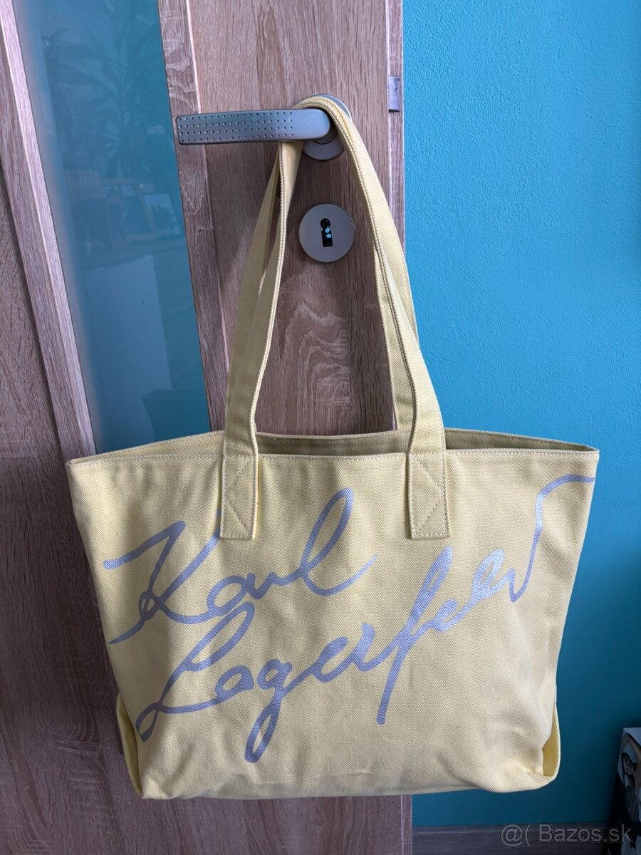 Predám kabelku Karl Lagerfeld, vhodnú do mesta aj na pláž. Nie je to taká tá obrovská klasická shoperka KL, je o niečo menšia, taká akurát. Minimálne nosená, výborný stav, bez poškodení. Rozmery: 44x30x14 cm.