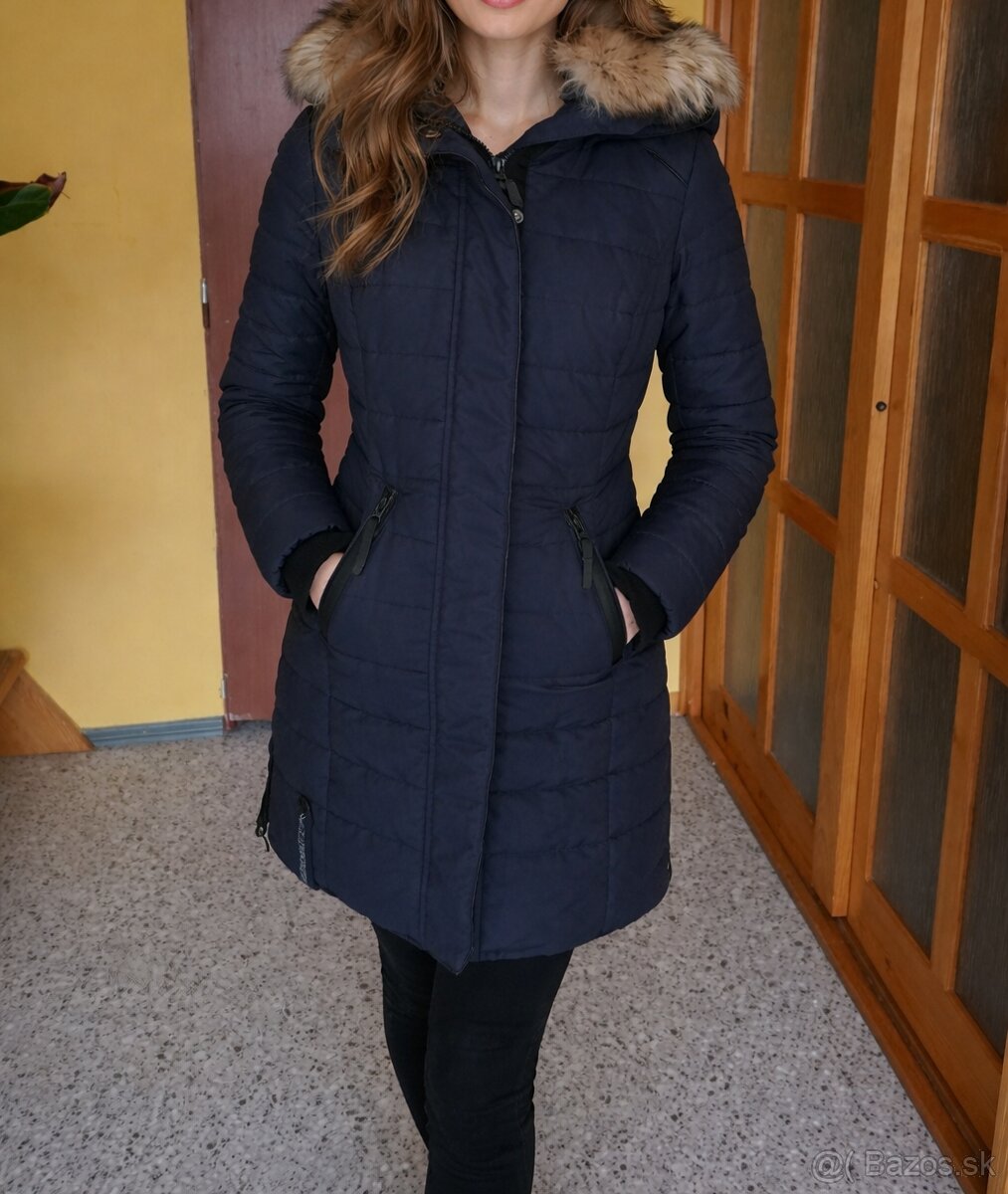 Kvalitná, teplá a pohodlná zimná bunda s odnímateľnou kapucňou na zips, ktorú je možné stiahnuť podľa potreby. Kožušinka na kapucni je taktiež samostatne odopínateľná.