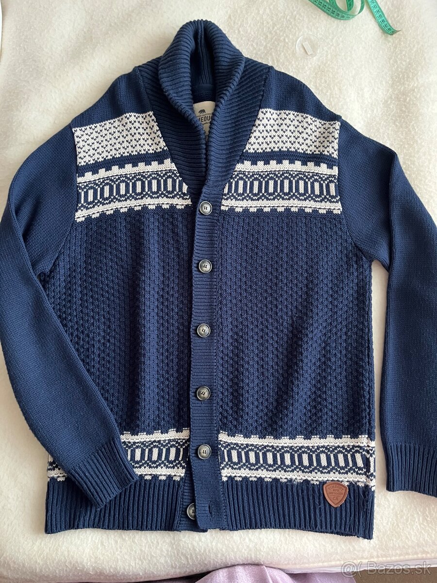 Predám pánsky pletený sveter, na veľkého chlapa. Celková dľžka 77 cm, šírka cez hruď 50 cm, dlzka rukáva 70 cm. Nosený.