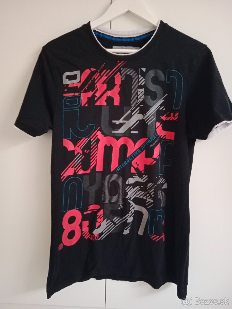 Predám zachovalé pánske/tínedžerske tričko s krátkym rukávom, čiernej farby s nápismi, veľkosť M, materiál bavlna, značka Angelo Litrico, okrúhly výstrih.