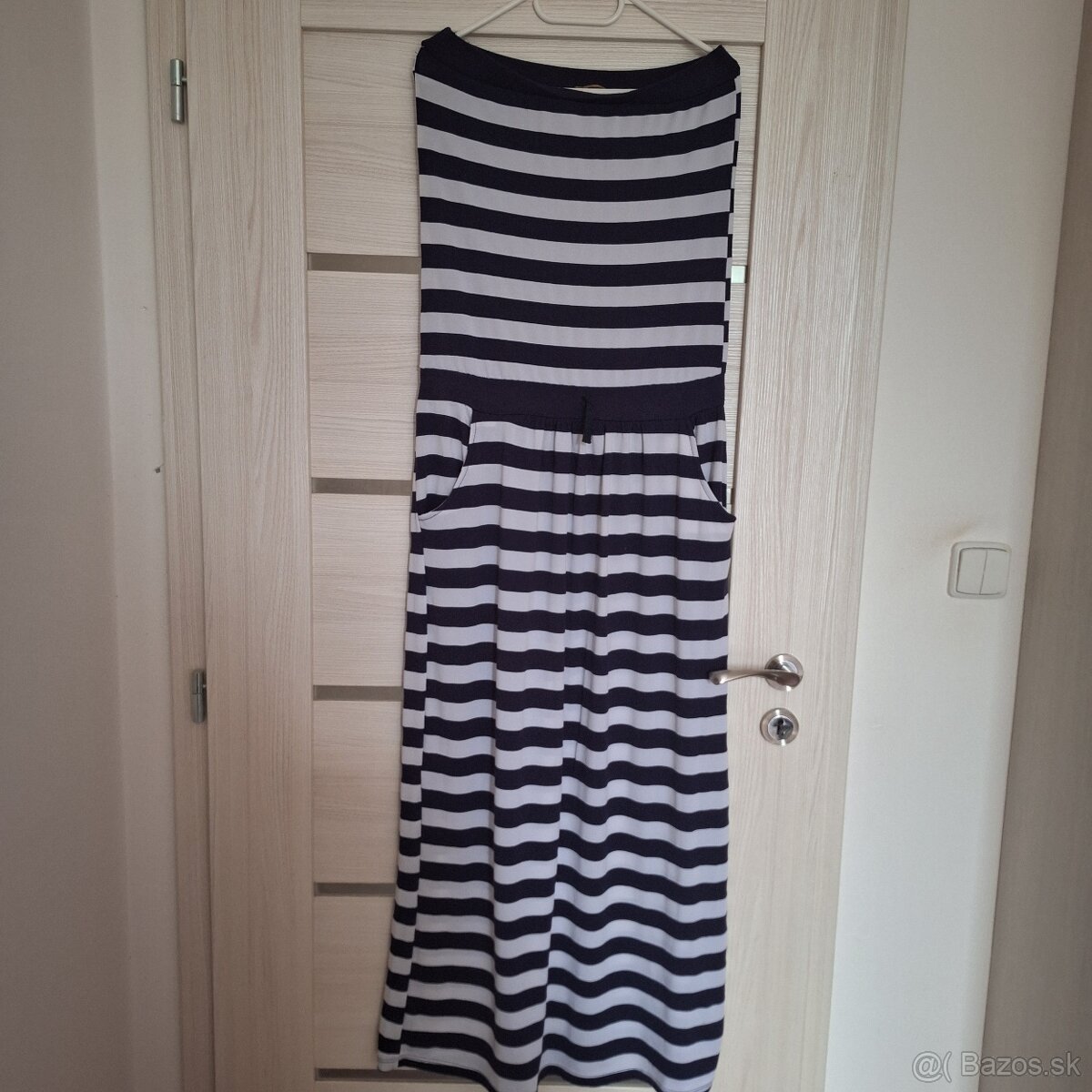 Dlhé šaty bez ramienok, voľné, pohodlné na boku vrecká.