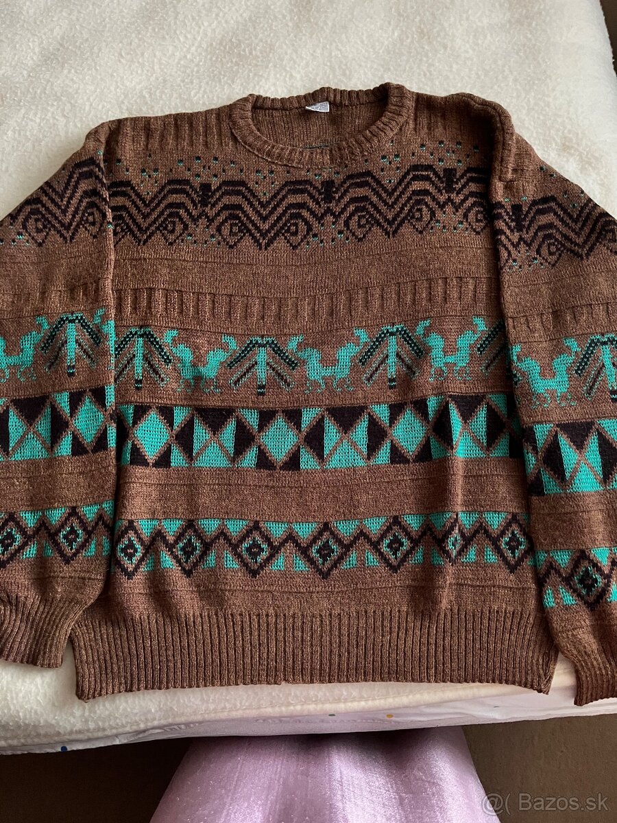 Predám pánsky sveter hnedo zelenej farby. Veľkosť 4XL. Celková dľžka 68, cez hruď 61, dľžka rukáva 69 cm. Cena 7 EUR plus poštovné.